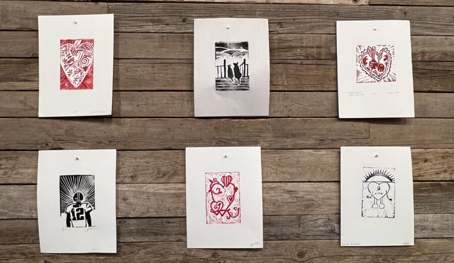 Participants are encouraged, but not required, to bring a black and white pencil line drawing of an image they’d like to create on a 3″x4″ sheet of paper. By the end of the workshop, participants will get to take their prints, and their carved blocks home!